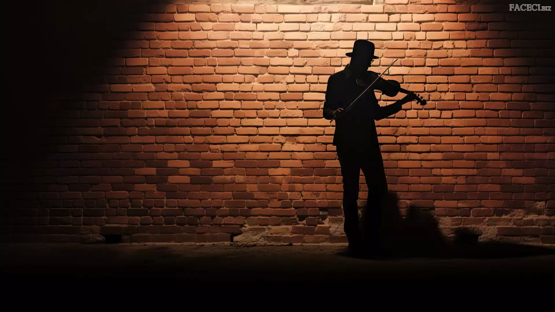 Ściana, Cegły, Grafika, Mężczyzna, Skrzypce - faceci.biz